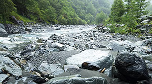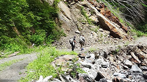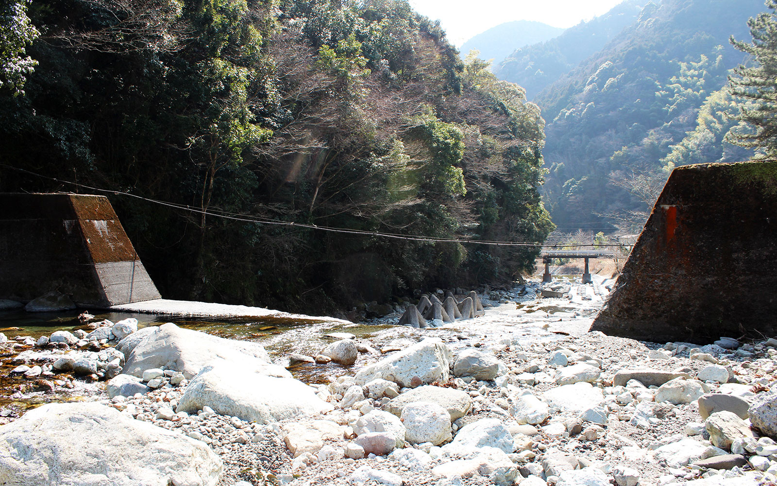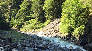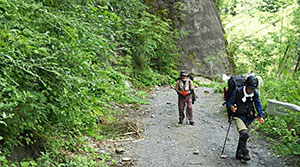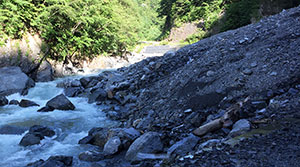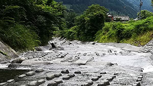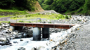 ところがこの橋の手前の道が20メートル位ガレ場で埋もれていました。