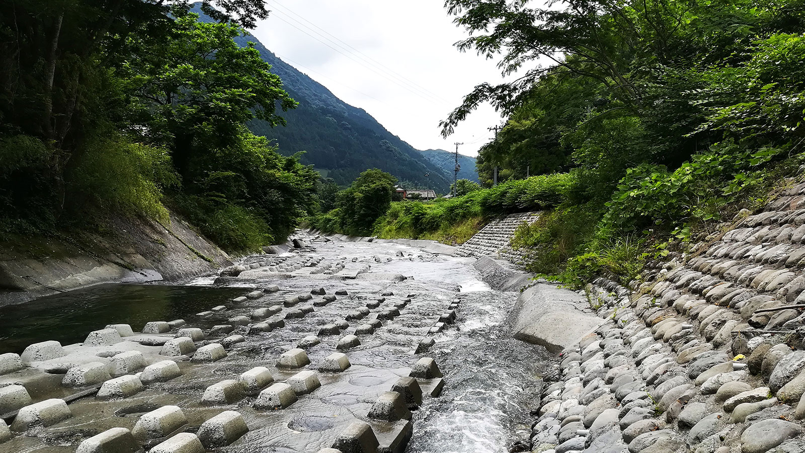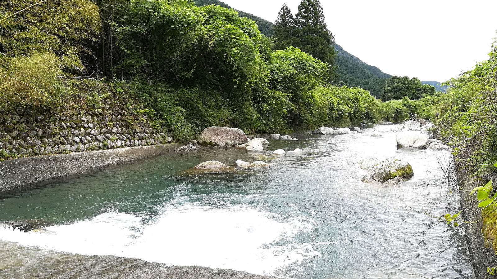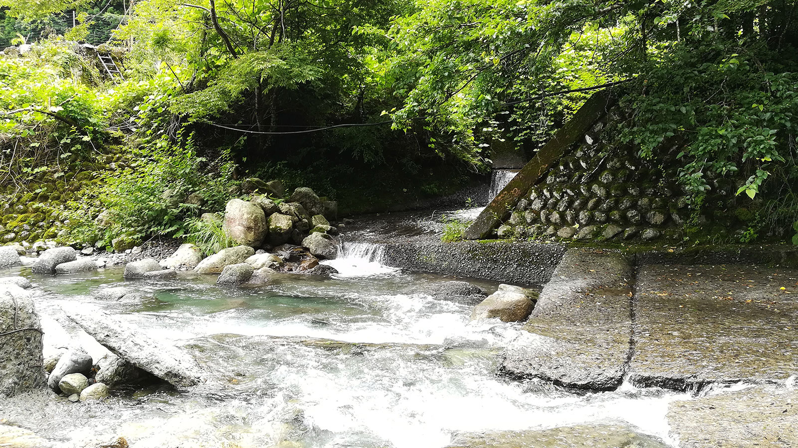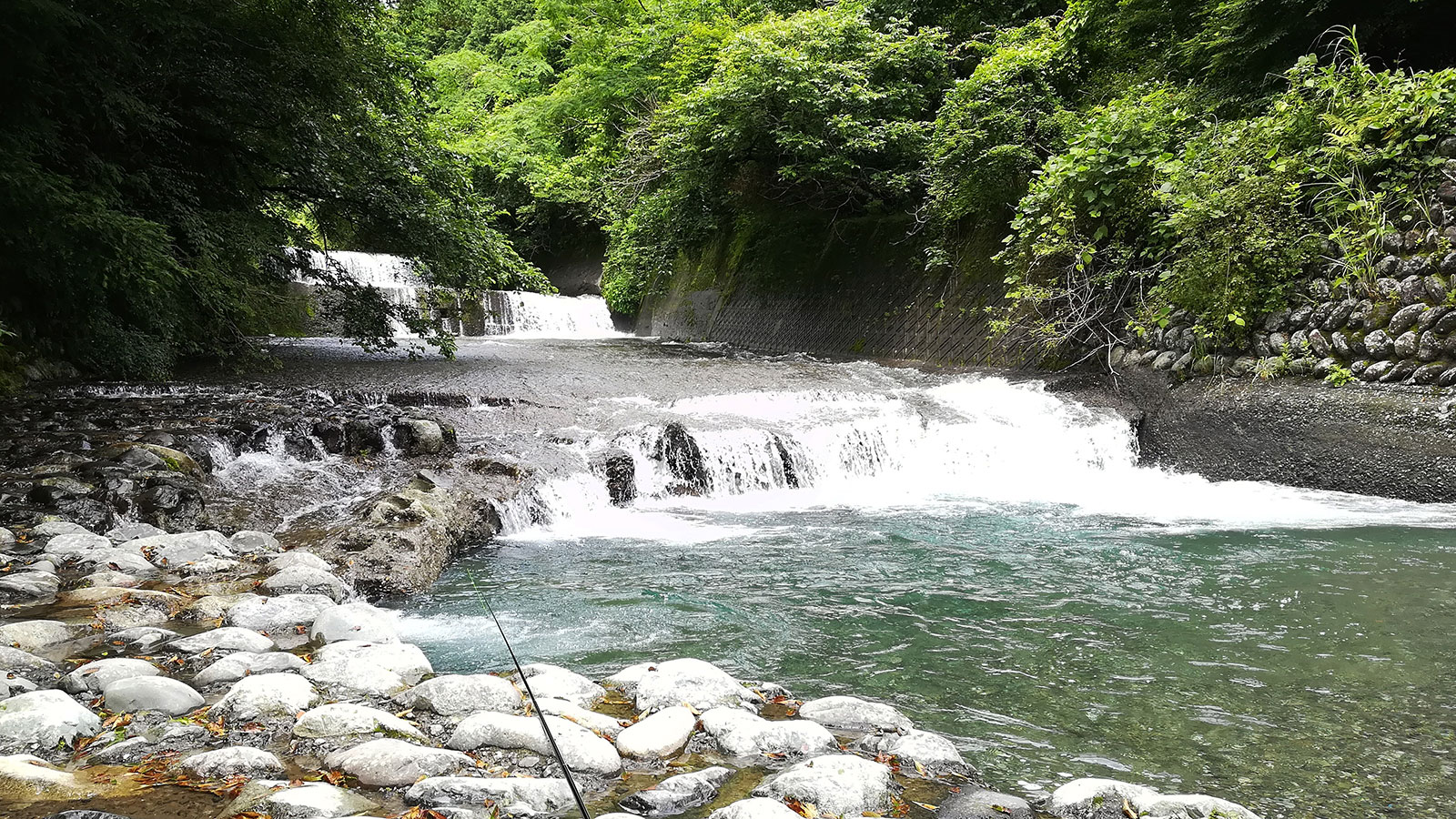 一つ目の橋の少し上から大きな石と尖った石の脇を注意しながら釣り歩きました。