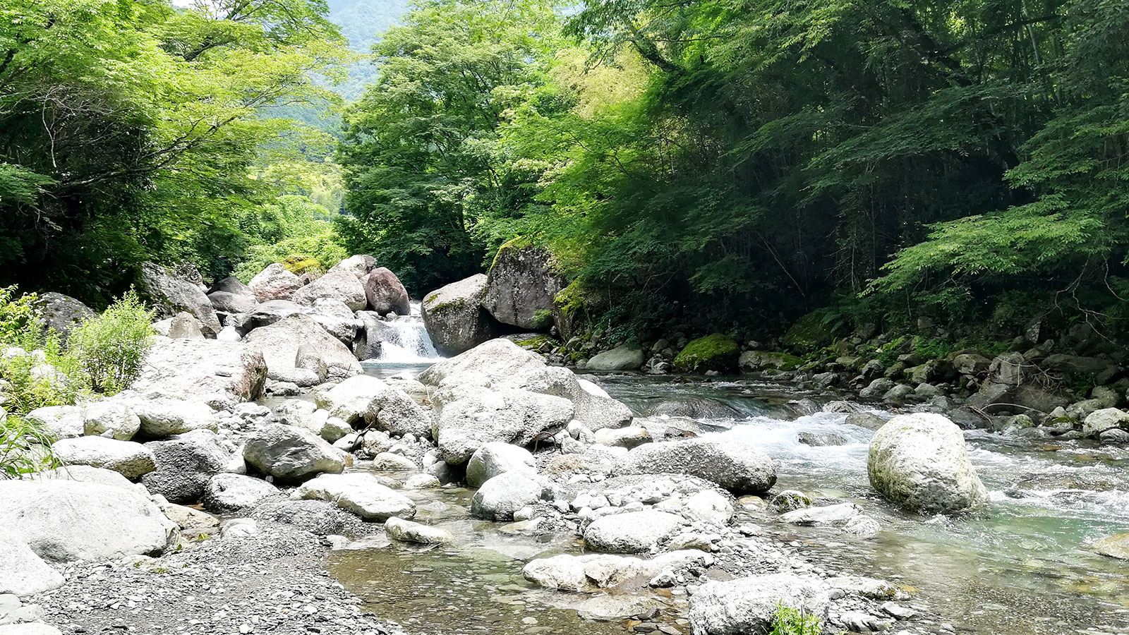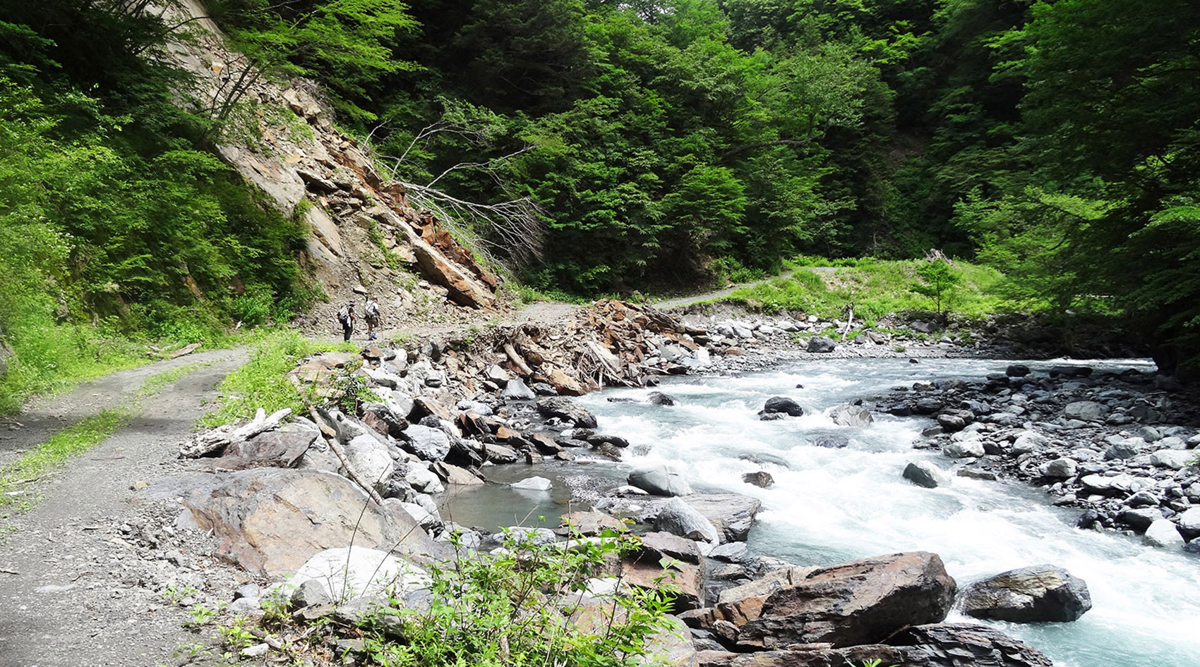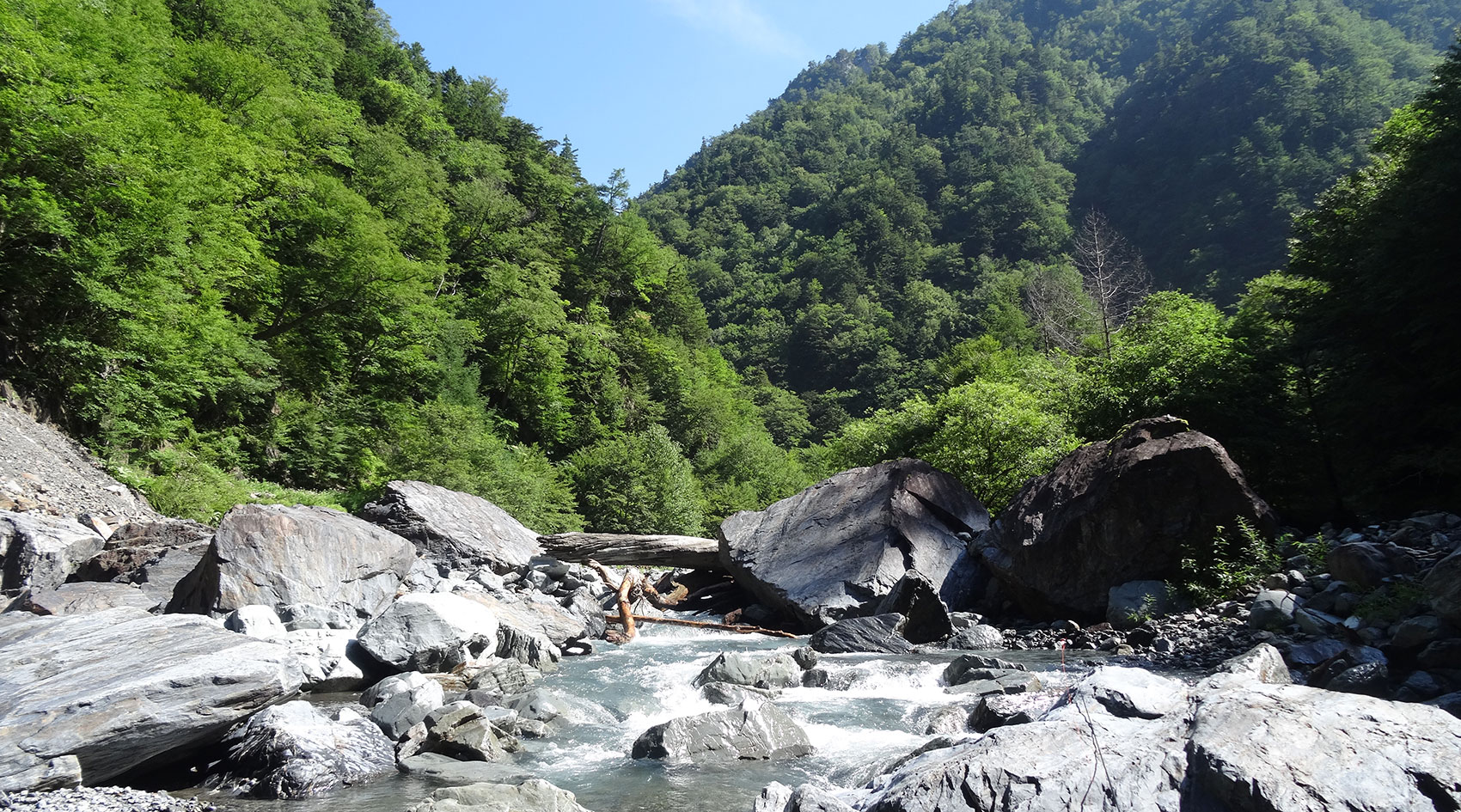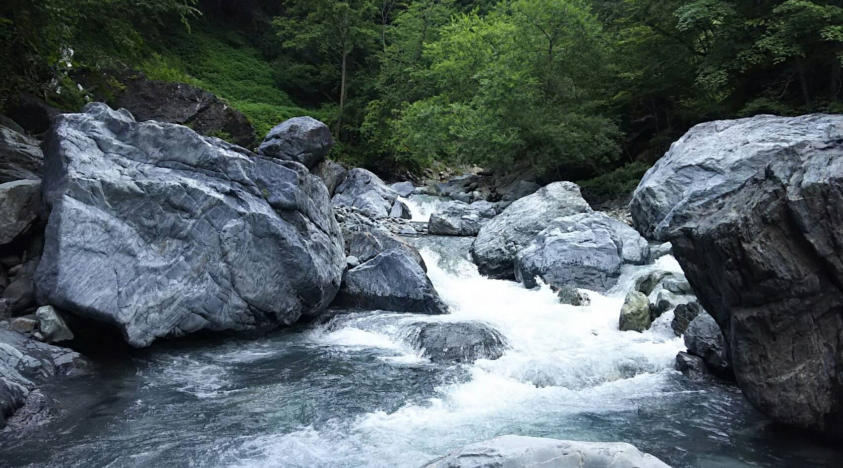 渓相は大きな石がゴロゴロあり、角が刃物のような鋭い岩盤で不安定なものもあり危険な場所が多かった。