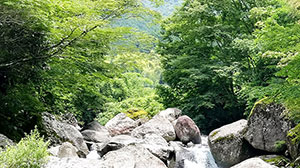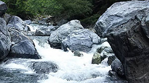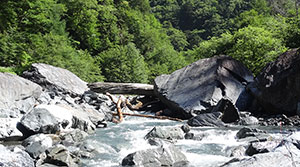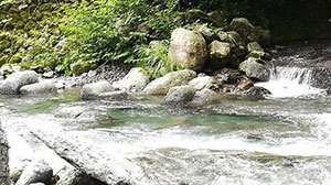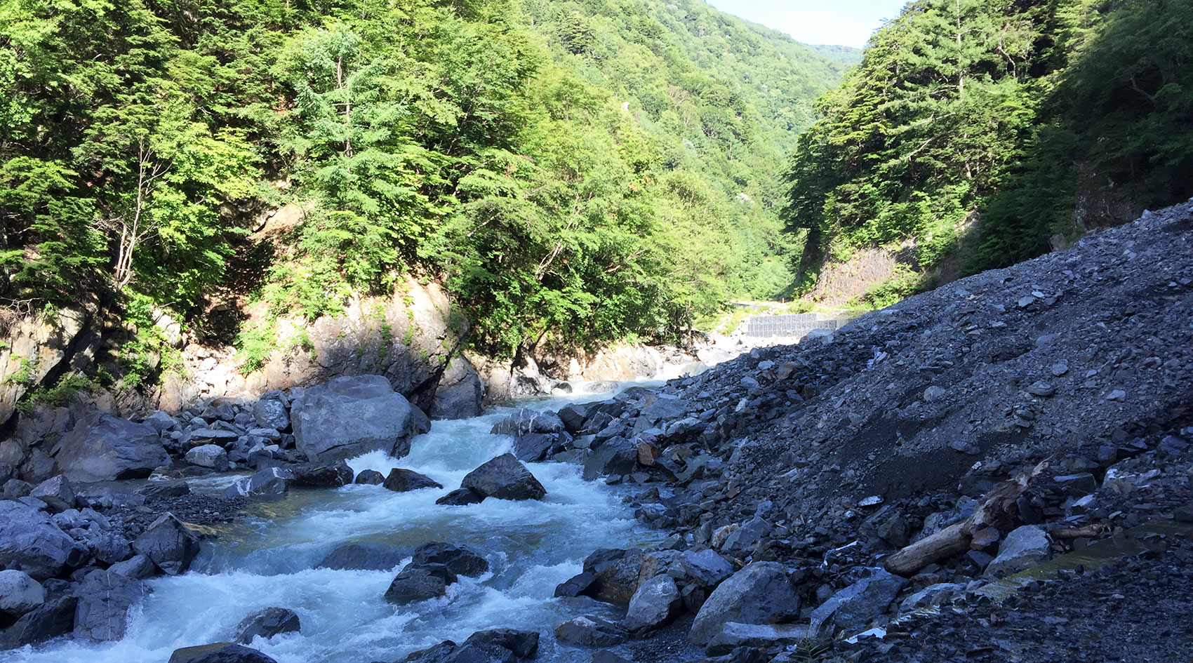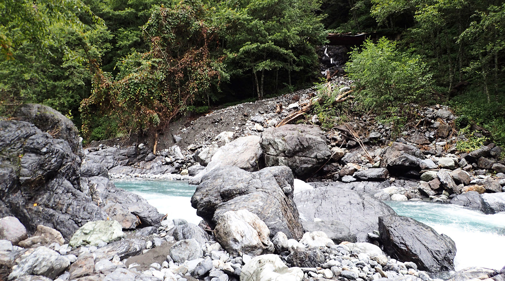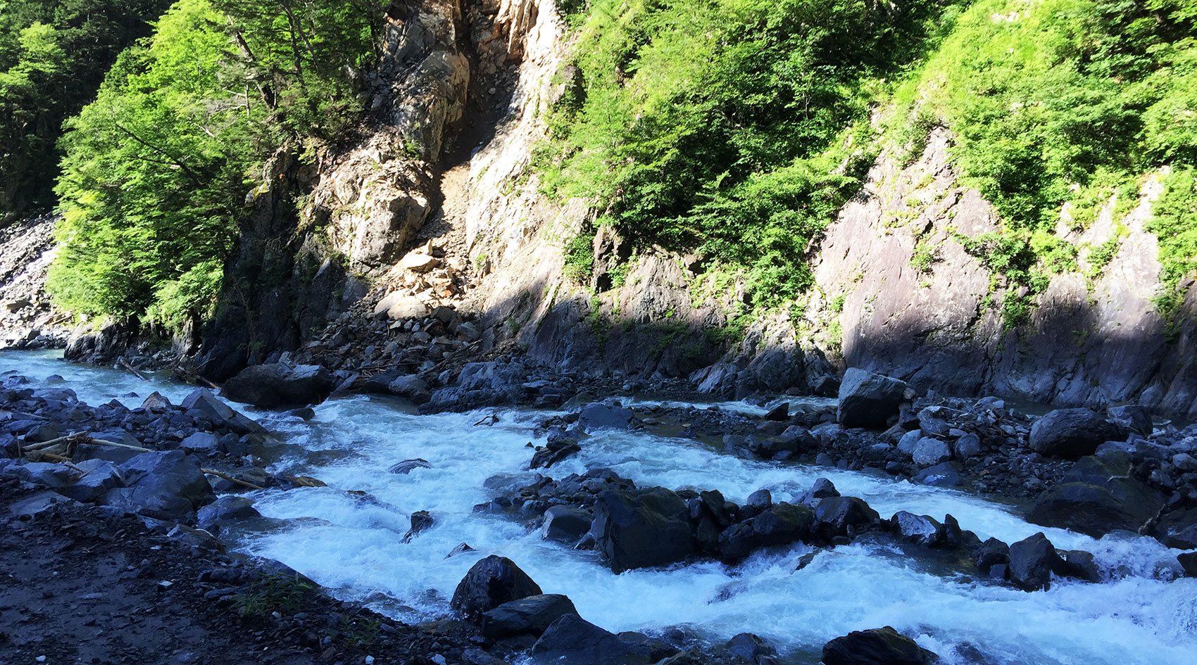 渓相は大きな石がゴロゴロあり、角が刃物のような鋭い岩盤で不安定なものもあり危険な場所が多かった。
