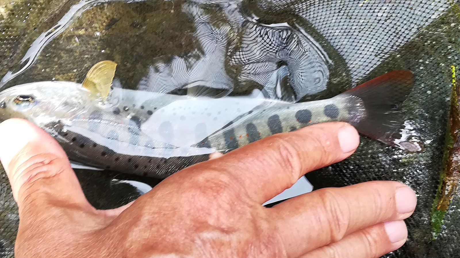 テンカラで釣れるイワナは比較的に型が良い(20センチ以上)