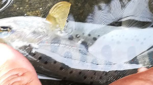 実は今回、私達の仲間の一人がそんなマナーの悪い釣り人と自分の釣り区間内でかち合い、遊漁鑑札の提示を求めたところ知らない振りをして行ってしまったそうです。