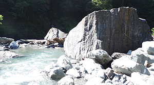 釣りを中断し、気分転換にと、そのまま支流の石沢川の河内へ向い、「河内の大石」の写真を撮って来ました。