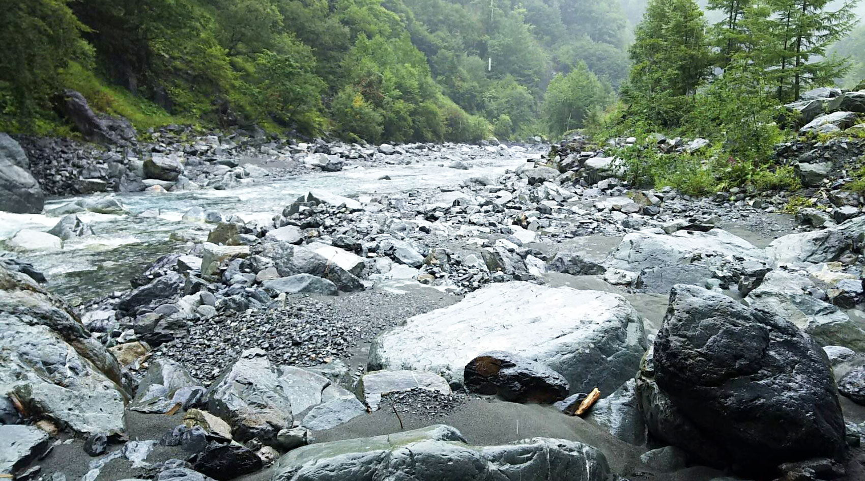 かなり増水していましたが、周りは広々としていて、大きな石が転がっている見通しの良い場所でした。