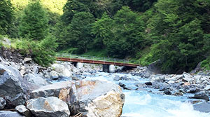 小屋を出てからおよそ20分位で一つ目の橋(水力発電所の前)に着きました。