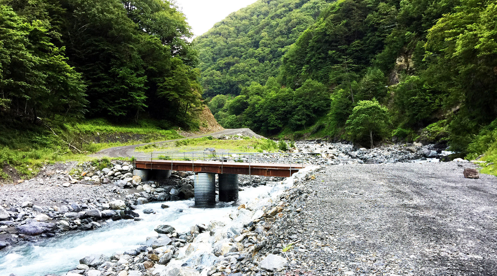 小屋を出てからおよそ20分位で一つ目の橋(水力発電所の前)に着きました。